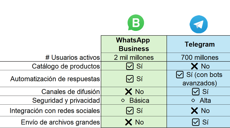 💡 Elige Telegram si: ✔ Necesitas crear comunidades grandes o enviar contenido masivo.